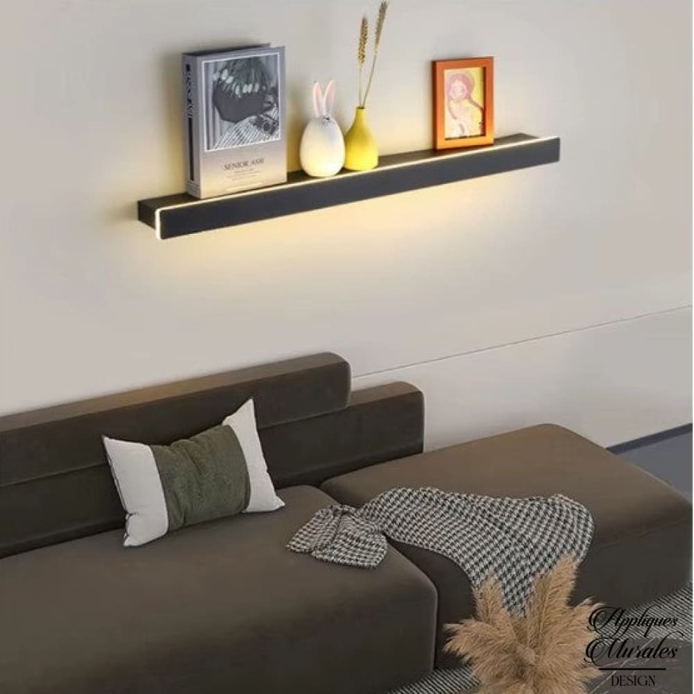 Une applique murale avec étagère avec rangement malin et éclairage sur mesure.