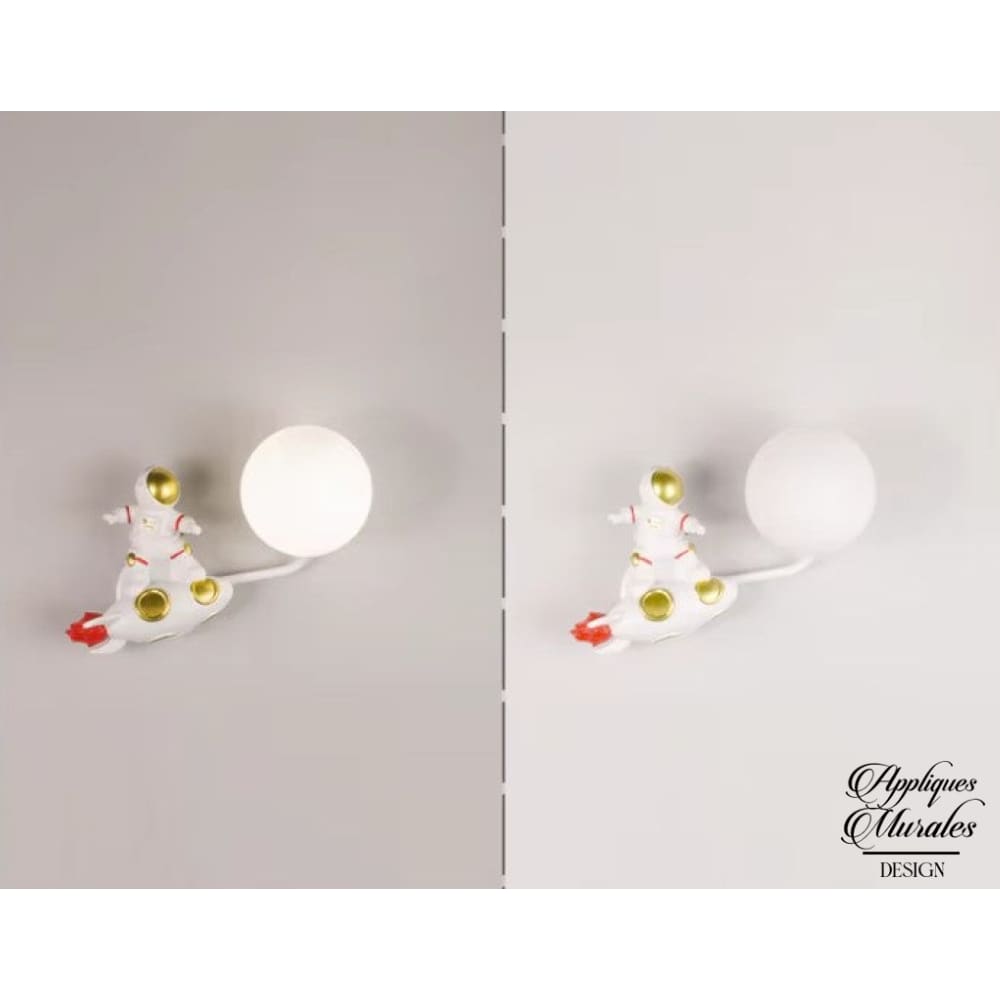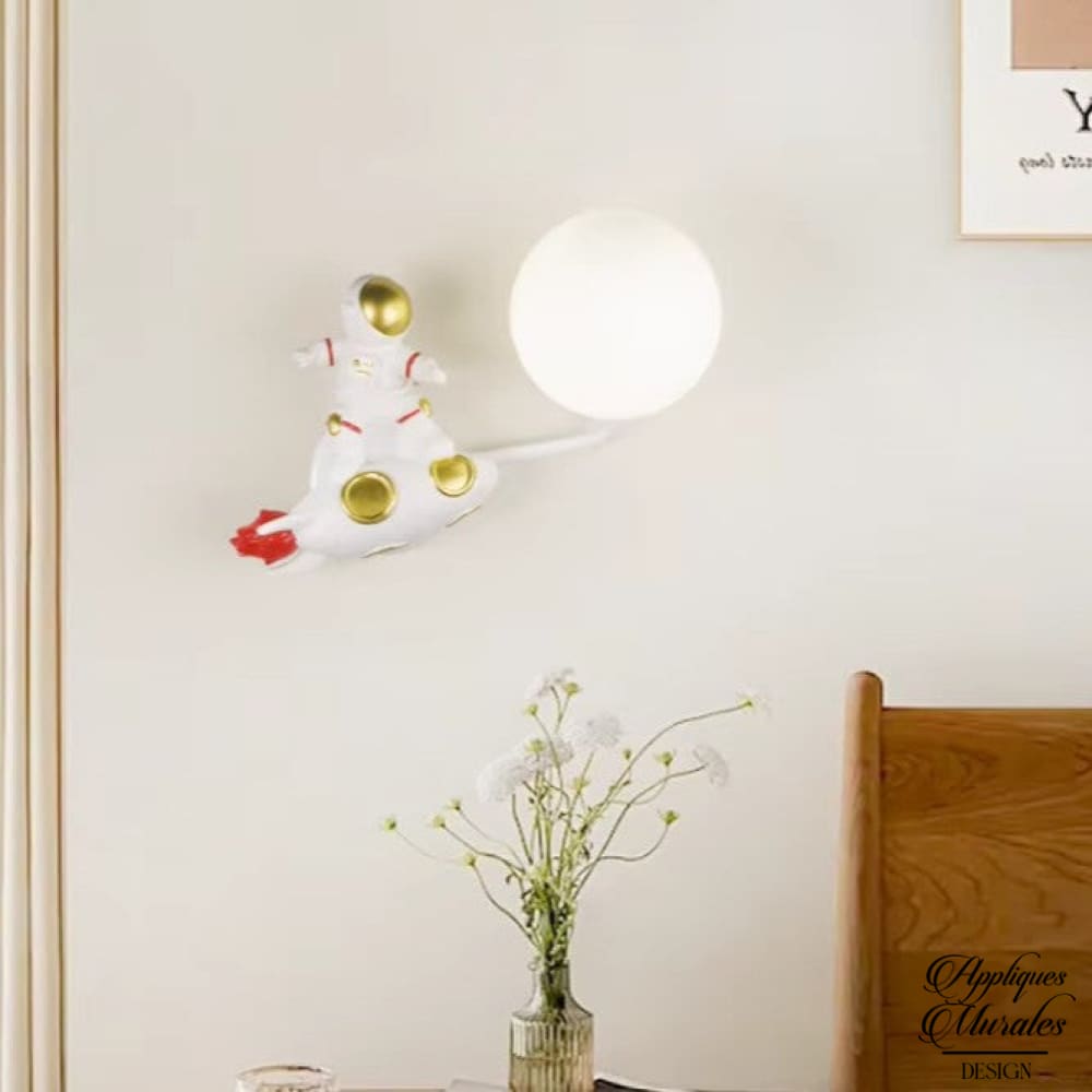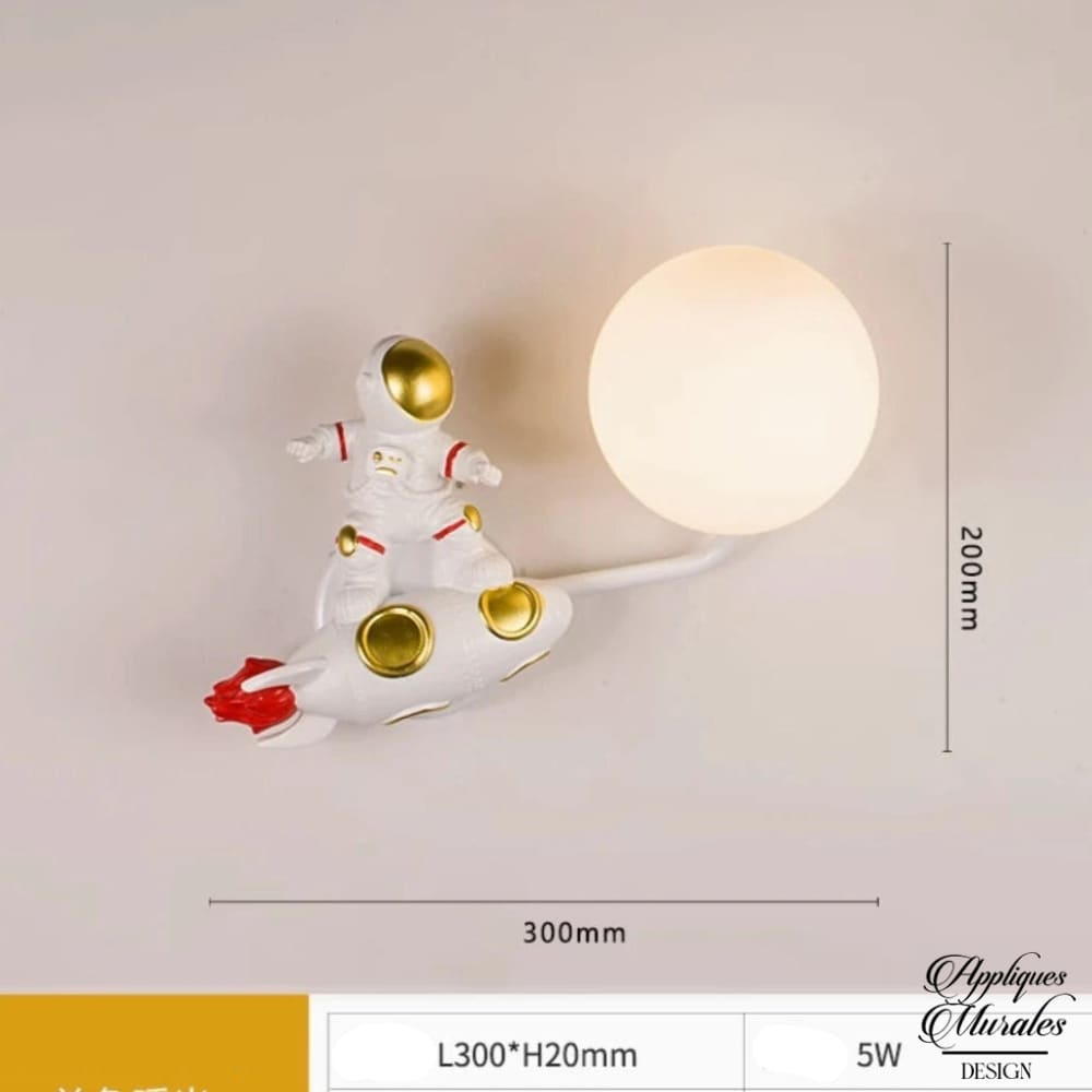 Laissez-vous séduire par cette applique murale fusée est conçue pour captiver les enfants, avec son design unique représentant un astronaute surfant sur une fusée en plein vol pour atteindre un astre.
