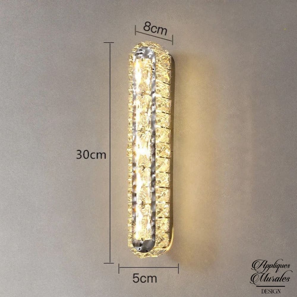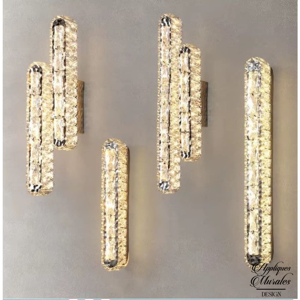 Appliques murales cristal : Barres lumineuses et cristaux étincelants – Un éclairage linéaire pour un mur scintillant.