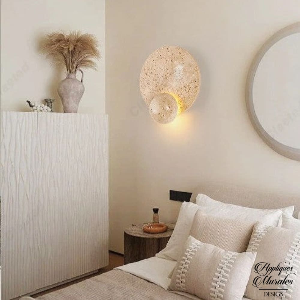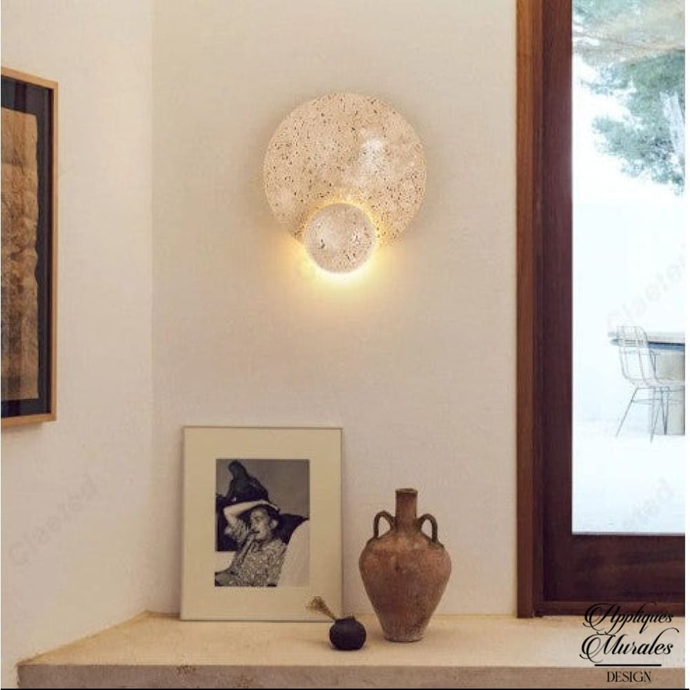 Laissez-vous séduire par cette applique murale pierre originale en travertin, appréciée pour sa beauté et sa durabilité, qui est un minéral se formant autour des sources d'eau chaude et des grottes, caractérisé par ses motifs et ses variations de couleur, qui peuvent aller des tons de beige aux nuances plus foncées comme le noir.
