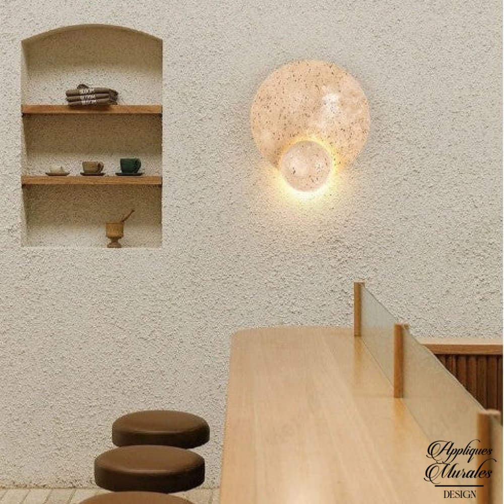 Applique murale pierre : les sphères minérales aux reflets organiques et lumineux.
