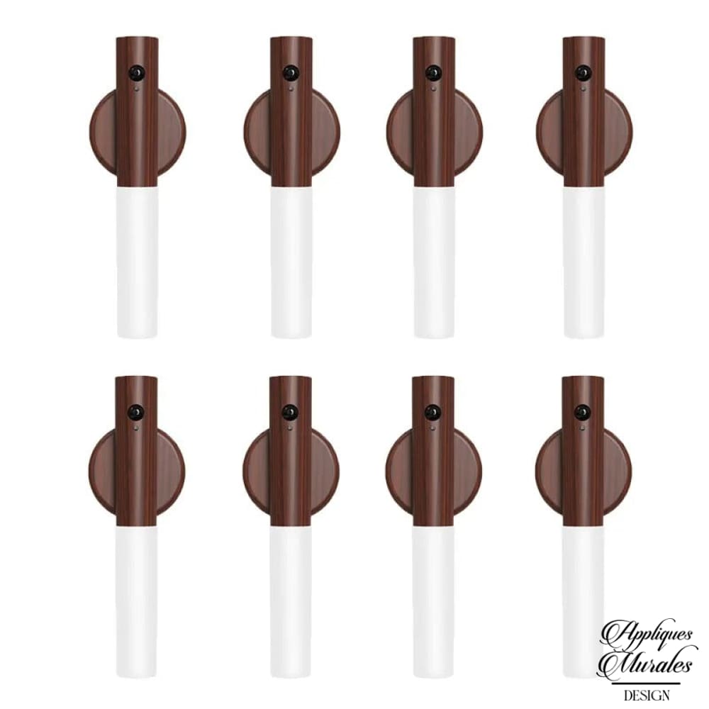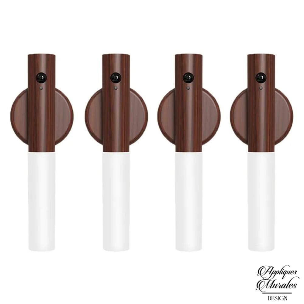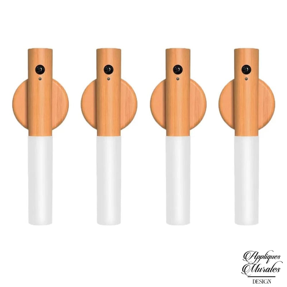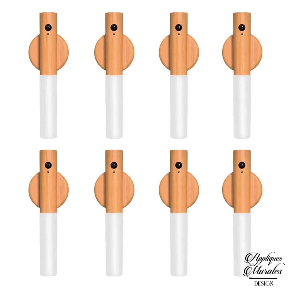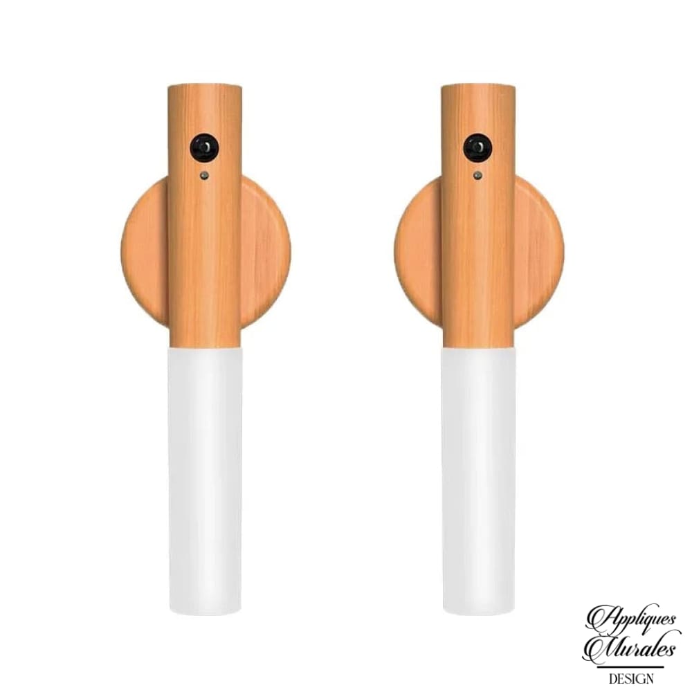 Applique murale aimantée : le bâton lumineux et son disque pivotant aux finitions bois élégantes.